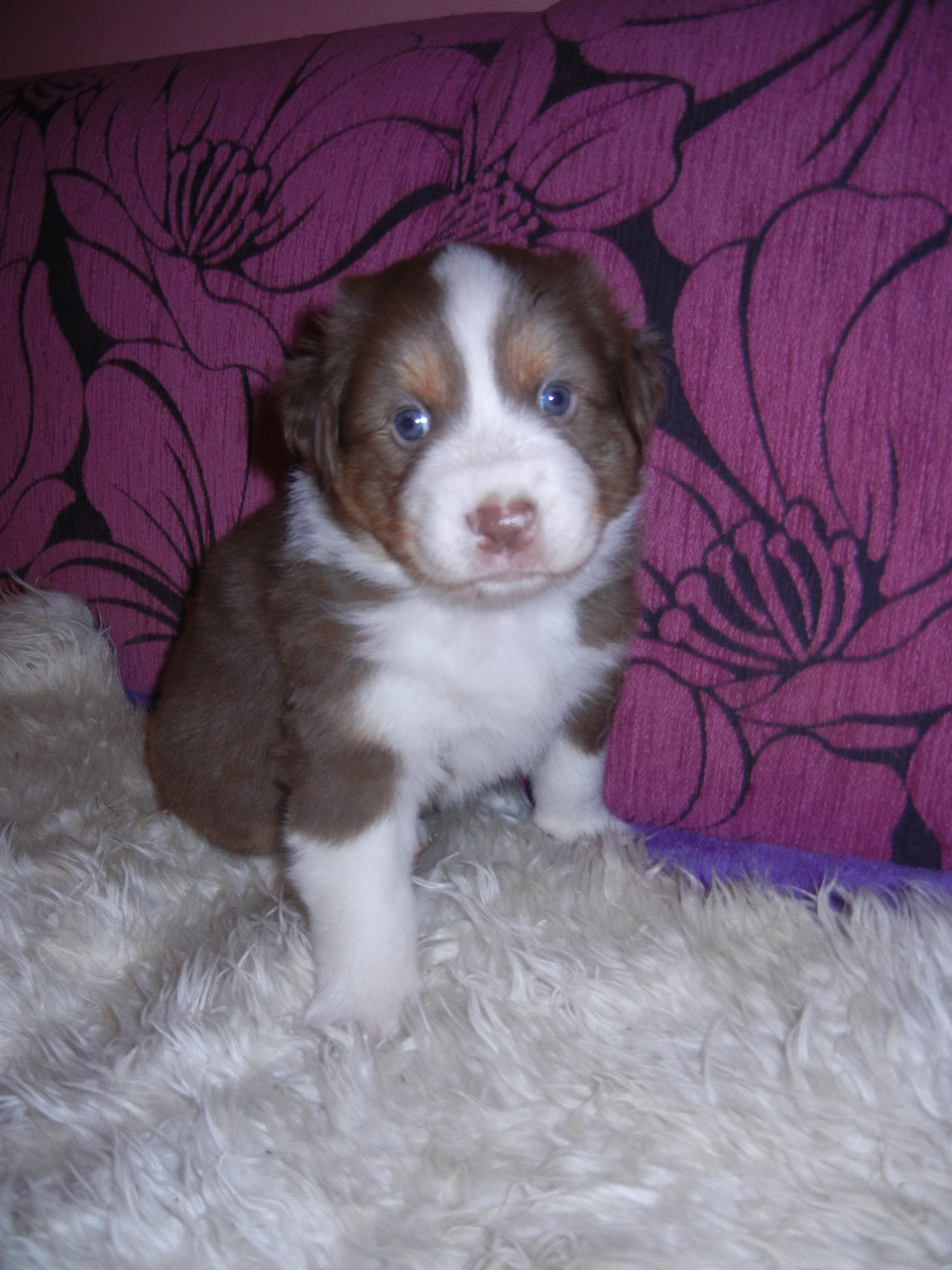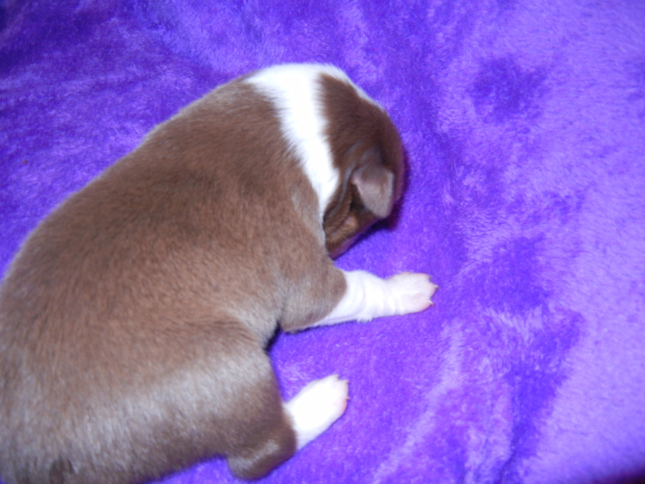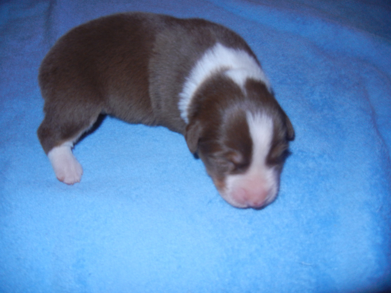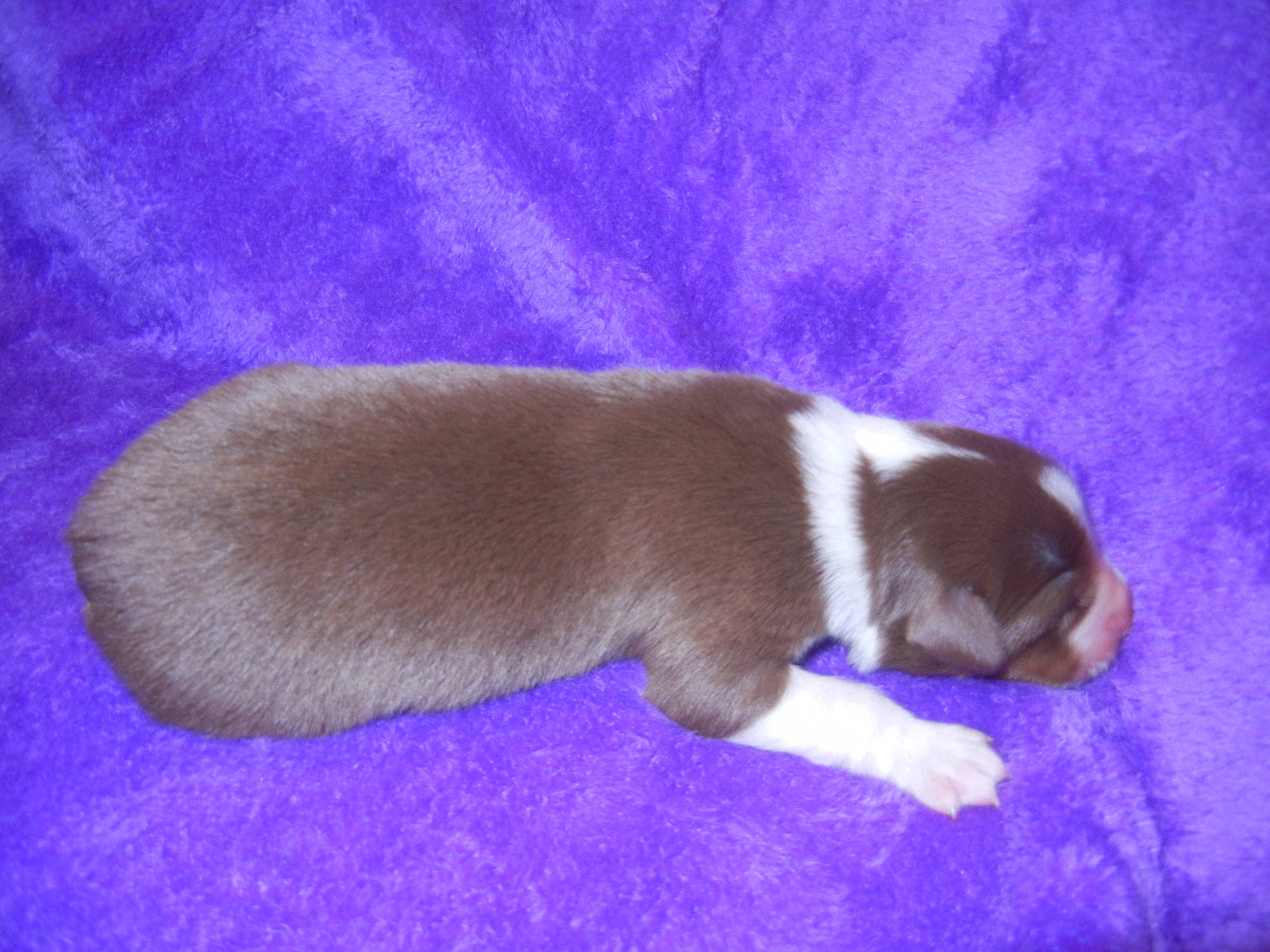 Pejsek barvy redtri - bílé znaky . Ocásek kupírovaný.